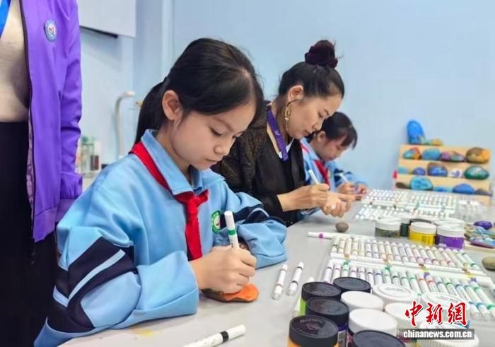 中国好家风专家讲师在广西平果市第八小学带领孩子们体验“石创艺”。主办方供图