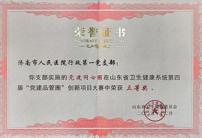 在近日落幕的全省卫生健康系统第四届“党建品管圈”创新项目大赛决赛中,济南市人民医院行政第一党支部的“党建同心圈”项目凭借扎实的工作基础、创新的融合思路和显著的实践成效,荣获全省卫生健康系统第四届“党建品管圈”创新项目大赛三等奖。