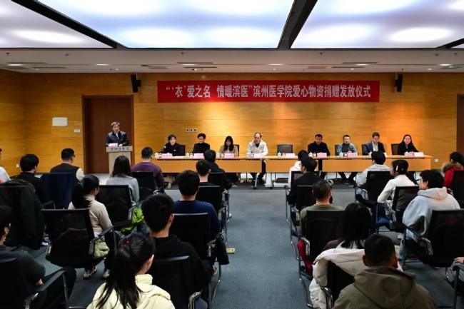 于景科代表学校向烟台市慈善总会、山东建源集团有限公司的慷慨解囊表示感谢。他指出,残疾人事业是“春天的事业”“爱的事业”,总会和企业的仁爱善举与学校“仁爱文化”精神高度契合,这份“暖身+暖心”的双重关怀必将激励广大残疾学子感恩奋斗、励志成才。他希望同学们要怀感恩之心,蓄力前行,将社会的善意、学校的关怀铭记于心,让这份温暖成为前行路上的不竭动力;要以奋斗为翼,笃行成才,深耕医学专业知识,牢记“仁心妙术”校训,用勤奋耕耘青春,用智慧筑牢根基;要传爱心之火,温暖向善,以自强不息的姿态感染身边人,用力所能及的行动帮助他人,让“奉献、友爱、互助、进步”的志愿精神代代相传,让爱的暖流在社会中持续涌动。