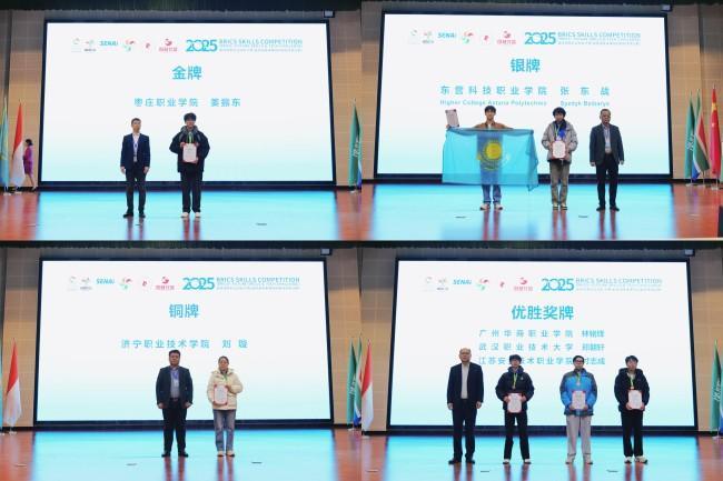 12月7日上午,2025金砖国家职业技能大赛人工智能技术应用赛项国际总决赛在枣庄职业学院顺利闭幕。来自金砖国家中国、哈萨克斯坦、俄罗斯、南非、印度的70余名参赛选手同台竞技、激烈角逐,最终评选出一等奖7个、二等奖12个、三等奖17个,优秀指导专家19个,优胜奖牌3个,金牌1个,银牌2个,铜牌1个。