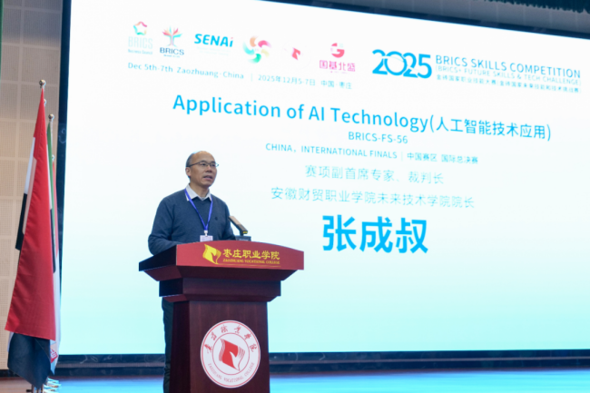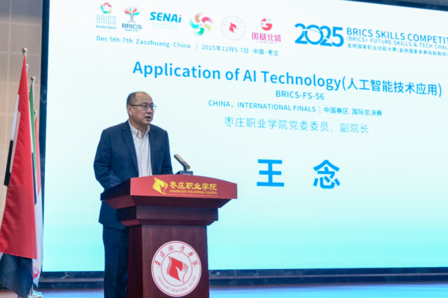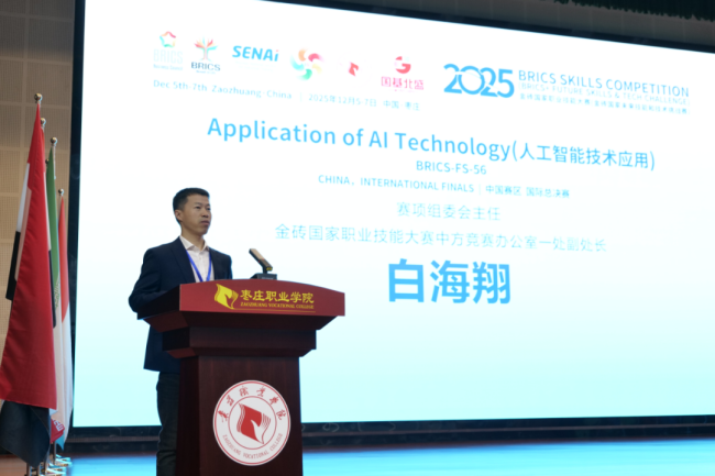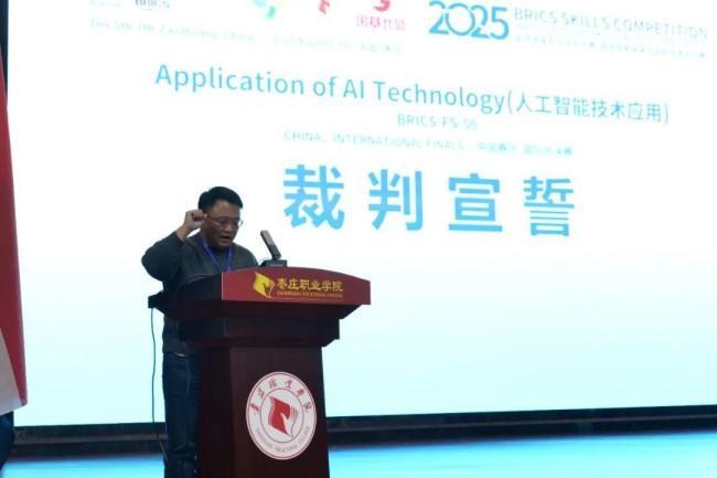 12月5-7日,2025金砖国家职业技能大赛人工智能技术应用赛项国际总决赛在枣庄职业学院举办,来自金砖国家中国、哈萨克斯坦、俄罗斯、南非、印度的70余名参赛选手齐聚一堂,以技会友、同台竞技,在人工智能领域展开高水平比拼。