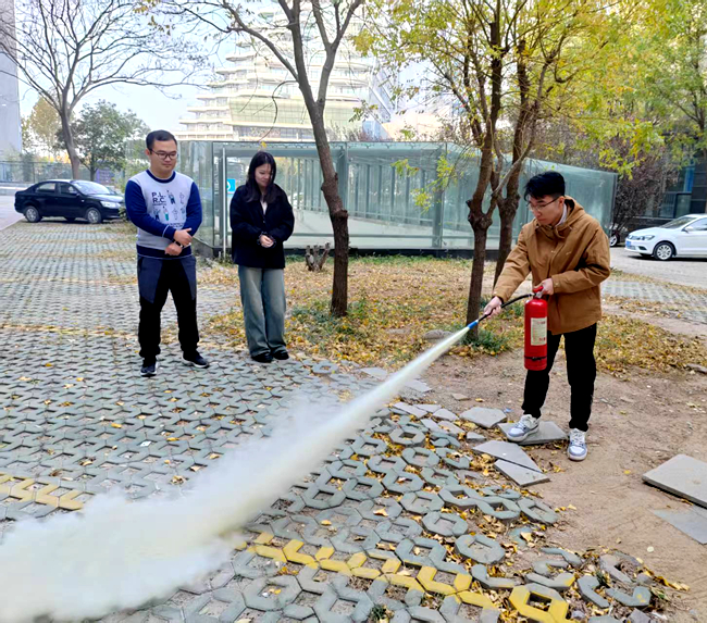 理论培训结束后,现场组织了消防应急疏散及灭火实操演练。随着警报响起,参训员工按照预定路线,迅速、有序地撤离至安全区域,整个过程紧张高效。在灭火实操环节,安全员现场演示了干粉灭火器与二氧化碳灭火器的正确使用方法,并指导员工分组进行实战演练。大家按照“提、拔、握、压”的操作步骤,亲身体验扑救初期火灾的过程,切实掌握基本灭火技能。
