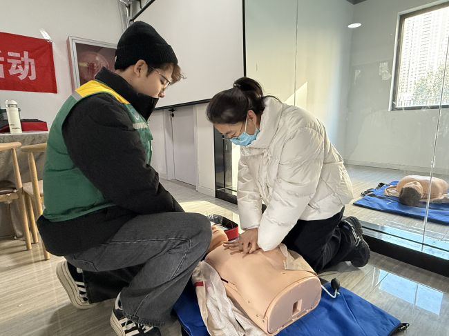 “以前只在电视上见过AED,现在亲手操作过才知道这么实用,学会这些技能心里踏实多了!”参与居民的真切反馈,道出了活动的实用价值。社团学生代表也表示,后续将持续优化实操指导方案,走进更多社区开展志愿服务,让急救技能成为居民必备的“健康护身符”。随后,校医院医护人员还为居民带来冬季常见疾病预防科普,围绕呼吸道感染、心脑血管疾病等高发病症,讲解预防要点与日常护理知识,并提供血压测量、健康咨询等义诊服务,实现“急救技能+健康防护”双重赋能。