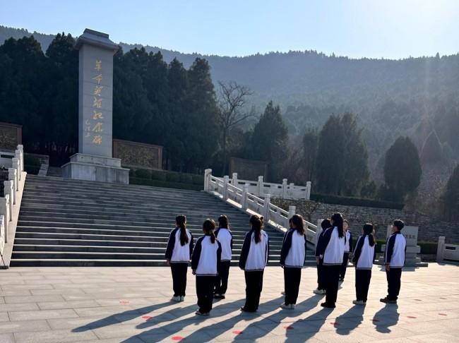 在大峰山革命根据地纪念馆,同学们整齐列队于烈士纪念碑前,向革命先烈敬献鲜花、肃立缅怀。在纪念馆内聆听宣讲员的生动讲解,回顾了根据地创建与发展的光辉历程。随后,四位学生代表围绕“一个烈士、一个支部、一个根据地、一次击毙”主线,分别讲述魏金三烈士抗日、长清红色党支部成立、大峰山根据地建立及其击毙日军高级将官的故事,将厚重历史转化为青春叙事,在“青年讲给青年听,致敬先辈同龄人”中实现红色基因的传承。