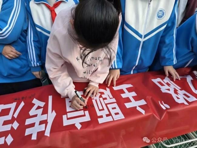 在活动现场,同学们依次上前,手持笔杆郑重签下自己的姓名。每一个签名都承载着对宪法的尊崇与敬畏,既是对“宪法宣传周”活动的积极响应,更是将宪法理念融入日常工作、学习与生活的庄严承诺。与此同时,现场还同步开展宪法知识宣讲,工作人员通过通俗的语言解读宪法核心要义,引导同学们深入了解宪法内涵,强化法治观念,提升法治素养。活动现场,红色签名横幅格外醒目,“与法同行点亮青春之路”几个大字在阳光下熠熠生辉。活动开始后,同学们有序排队,在横幅上郑重签下自己的名字,许下一份遵守法律、维护法治的庄严承诺。