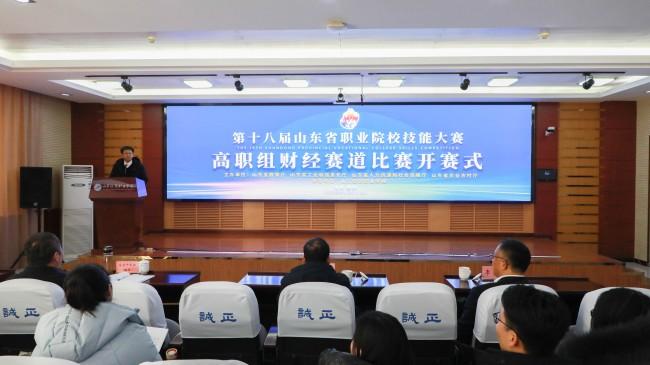 12月14日下午,第十八届山东省职业院校技能大赛高职组财经赛道比赛开赛式在山东经贸职业学院第二报告厅举行。学院党委副书记、院长陈卫国,潍坊市职业教育发展研究中心主任李刚,赛事裁判长、监督仲裁组组长等出席活动。开赛式由学院副院长张强主持。