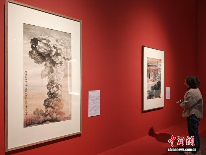 吴湖帆名作《庆祝我国原子弹爆炸成功》亮相大展。中新网记者姜煜摄