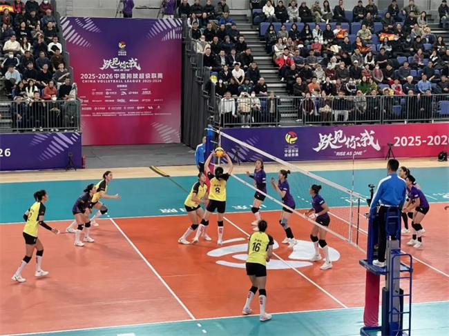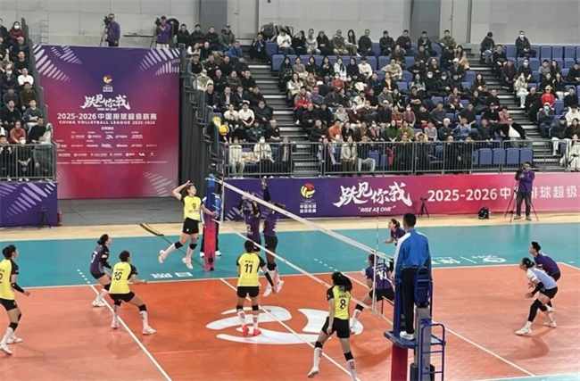 当晚,日照香河体育公园内掌声雷动、声浪迭起,2025-2026中国女子排球超级联赛常规赛A级第二轮第6场比赛在此上演。如潮的呐喊和加油声冲破冬夜寒意,将现场气氛一次次推向沸点。现场,山东日照钢铁女排主场迎战天津渤海银行女排,最终以3:1首战告捷,四局比分分别为21:25、28:26、25:23和25:20。