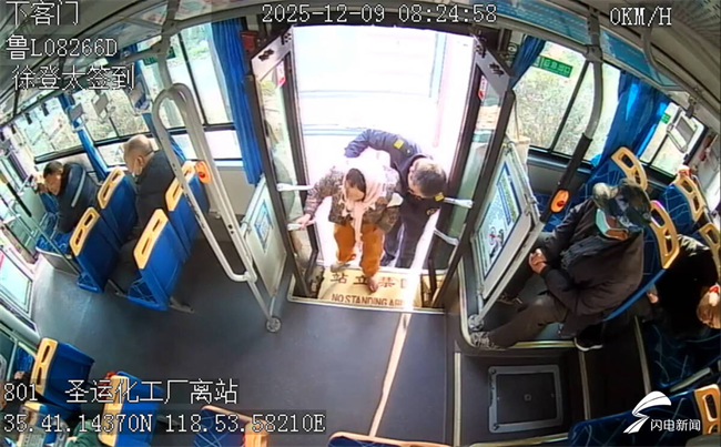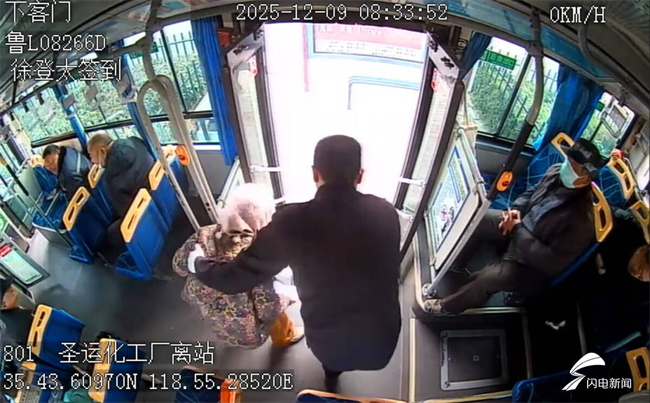 当公交车行驶至老人目的地站点时,徐登太再次起身,提前来到车门处等候。车辆停稳后,他搀扶着老人慢慢走下车,一路护送老人到站台的候车椅旁。确保老人安全后,才转身返回车上。