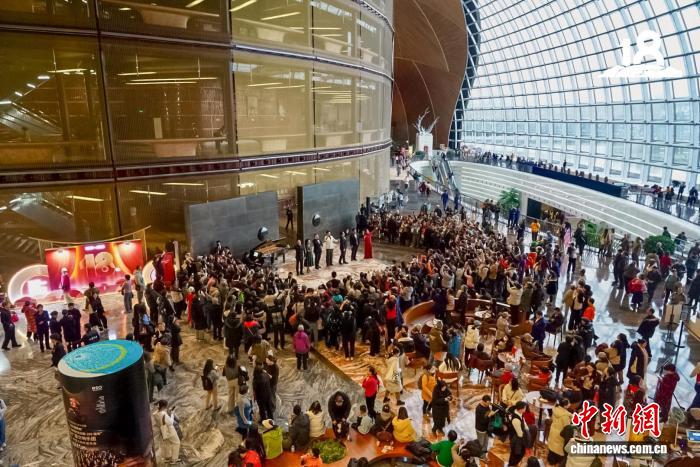 公共空间化身“流动舞台”,让艺术触手可及。音乐厅三层南侧的“未来剧场”,机器人轮番“炫技”,让观众看到科技与艺术融合发展的最新成果。音乐厅二层北侧的文物活化数字戏剧《天官赐福》艺术科技展示区、北玻璃幕墙东侧的AI科技体验项目《魔屏AI旅拍》更是科技感十足,让观众收获沉浸式体验的乐趣。戏剧场二层北侧的整点报时、西咖啡厅区域的手风琴五重奏、钢琴独奏及四手联弹、打击乐合奏、多民族特色乐器合奏与机器人表演《未来剧场之机器人总动员》等,让观众在漫步间与美好旋律不期而遇。一层公共大厅的演出服装展示,更成为观众打卡留念的热门点位。歌剧院铜门外的弦乐、非遗歌舞、国家大剧院制作话剧《傲慢与偏见》谢幕舞、与歌剧咏叹调演唱等“快闪”,给观众们带来惊喜不断的艺术邂逅。