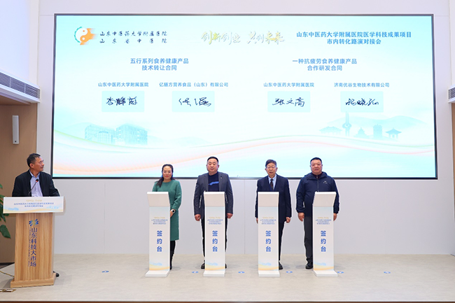 活动现场亮点纷呈,山东中医药大学附属医院与山东省计算中心(国家超级计算济南中心)、山东麦德森发展集团有限公司等多家单位集中签约,合作内容涵盖战略合作、临床研究、健康产品开发及具体技术转化等多个核心领域,为成果转化筑牢合作根基。