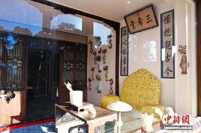 文明坦言恢复三希堂的原状陈列难度最大,因为面积小,只有8平方米,同时东西又特别多,墙上很多壁瓶是三希堂一大特色,壁瓶里还插有各种宝石花,不管是瓷器壁瓶,还是小宝石做的花,实际上都很娇贵,复原的时候确实是小心翼翼,费了很大气力。