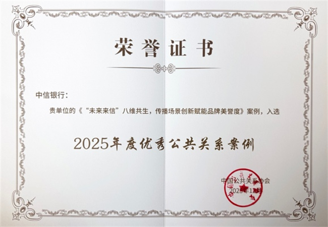 中信银行“未来来信”入选中国公关协会2025年度优秀公共关系案例