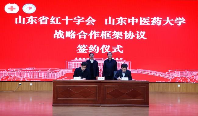 会上,山东省红十字会与山东中医药大学举办战略合作框架协议签约仪式,共同为“山东省红十字团体会员单位”“山东省红十字应急救护培训基地”揭牌。山东省红十字会为山东中医药大学红十字会进行授牌,山东中医药大学红十字会首任会长张玉龙作表态发言。