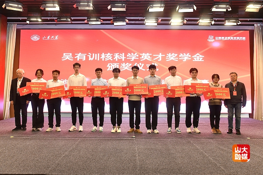 陈宏伟代表山东大学接受吴有训核科学英才奖学金捐赠。徐荣松代表中国原子能科学研究院捐赠。