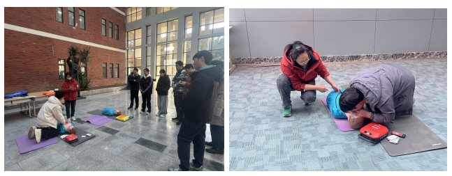 在理论教学环节,储能技术学院党委委员于昊教授围绕气体与气瓶安全管理,系统讲解了气体危险特性、气瓶分类标识、安全使用流程、风险识别管控以及泄漏应急响应等关键内容,精准解答师生在日常使用中的常见疑问。青岛西海岸新区急救中心专家梁爽则聚焦实验场景可能发生的突发状况,开展心肺复苏(CPR)与自动体外除颤器(AED)专项培训,通过专业演示与步骤拆解,传授实用急救技能。