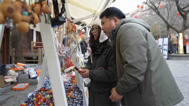 非遗集市上,来自当地的部分非遗代表性传承人带来了盘扣、绢花、虎头帽等非遗文创。展区前,围满了欣赏和体验的游客,人头攒动热闹非凡,充满了浓浓的乡土和文化气息。“这样的活动太好了,通过这种形式让非遗走进群众生活,让更多的人关注到传统手工艺。”游客潘娜说。