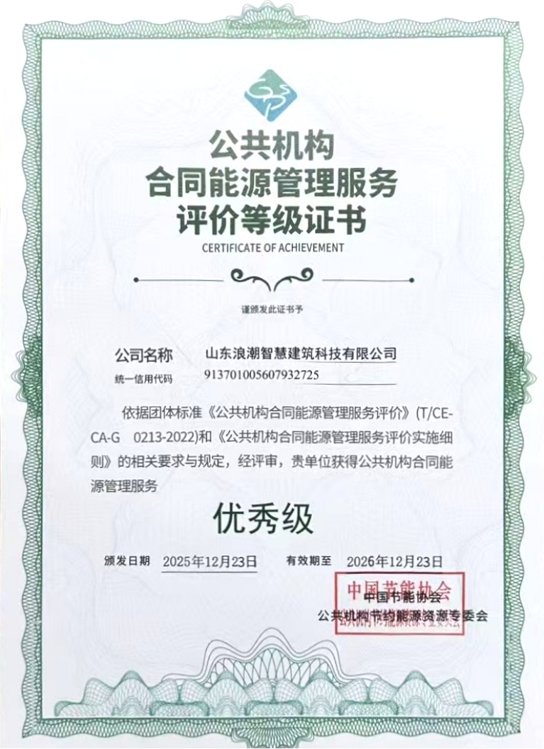 据了解,此次评价严格依据《公共机构合同能源管理服务评价》(T/CECA-G 0213-2022)团体标准开展,是规范行业服务标准、提升行业整体水平的重要举措,评价结果为公共机构遴选优质服务商提供了权威参考。浪潮智慧建筑此次获评优秀级,既是对其在合同能源管理领域技术研发、服务落地等方面成果的高度肯定,也标志着企业在公共机构节能降碳服务赛道的专业能力与行业影响力实现新跃升。