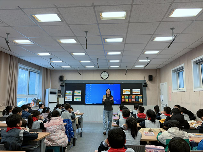 课堂以“触摸文字根脉,传承文化薪火”为主线,授课老师通过故事讲述、文物图像、动画演绎等多种形式,生动解析“日、月、山、水”等甲骨文的造字智慧与文化内涵,将古老文字转化为学生可感可知的生动意象。课程还设置了临摹拓印、趣味解字、创意绘写等实践环节,让学生在动手体验中感受汉字演变,课堂氛围活跃,文化认同感油然而生。