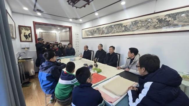 仪式结束后,全体人员合影留念,之后在张期鹏的介绍下进行了参观并和莱芜作协的专家进行了座谈,畅谈文化学习对孩子的重要性。鸿儒书院这一公益性研学平台将成为鲁矿学子定期开展地方特色传统文化实践活动的重要场所。在这里,学生们能够亲身触摸历史文脉,将课本中的抽象概念转化为真切的生命体验。