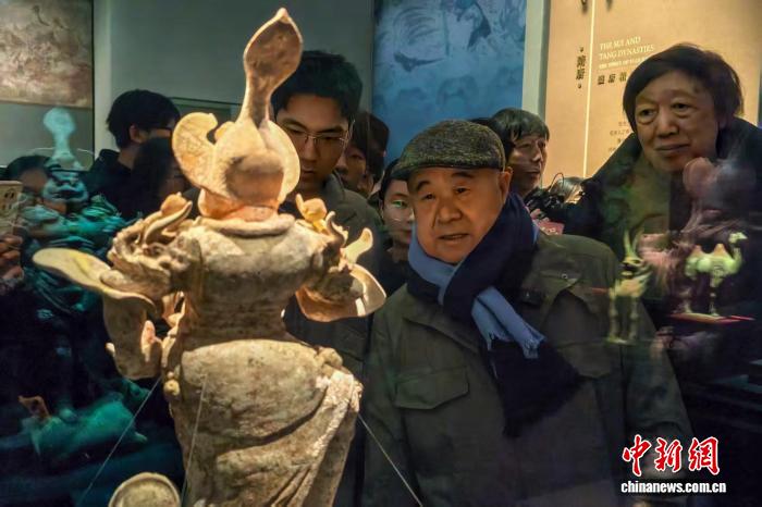 1月8日,作家莫言来到天津大学冯骥才博物馆。图为莫言(中)与冯骥才(右)参观博物馆。中新社记者佟郁摄