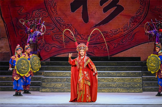 图为浙江小百花越剧院演员李云霄在晚会上饰演“穆桂英”。(浙江省文化广电和旅游厅供图)