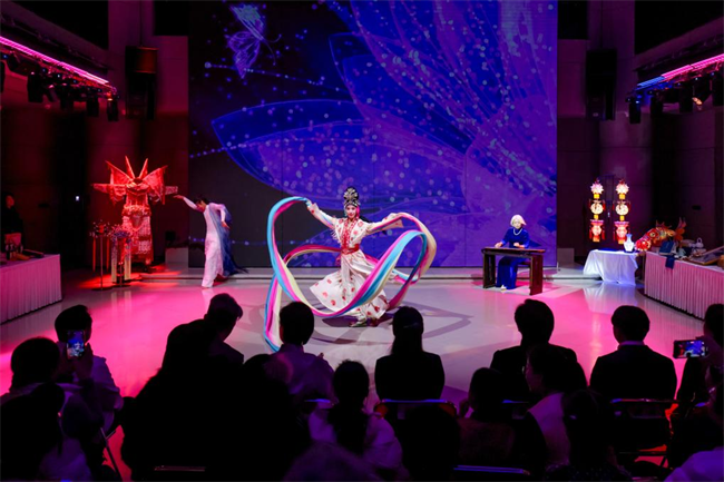 此次分享荟突破传统非遗活动模式,以国家级非遗代表性项目十八蝴蝶创编的舞蹈《破茧成蝶》灵动开场,引领观众开启沉浸式的非遗美学之旅。在静态展览区,集结浦江板凳龙、金华火腿腌制技艺、婺州窑陶瓷烧制技艺、东阳竹编等40个项目的艺术化陈列,展开八婺风物长卷。动态展演收获满堂喝彩,浦江古琴的空灵雅致、金东蛇拳的刚柔并济,以及浙江婺剧艺术研究院《天女散花》《魁星点斗》等经典折子戏华美呈现。