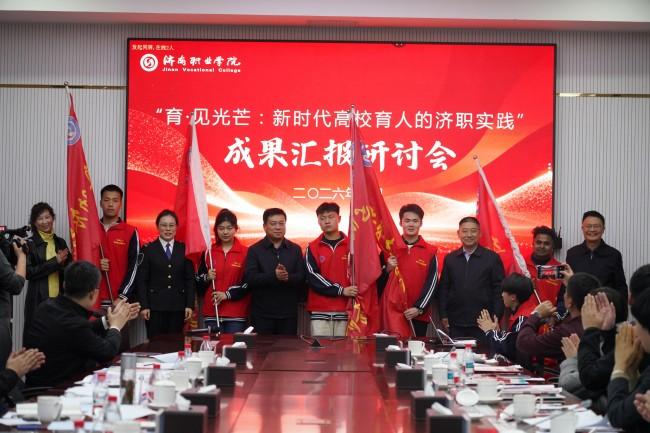 2026年1月15日下午,济南职业学院在彩石校区尚勤楼多功能厅举行“育·见光芒:新时代高校育人的济职实践”成果汇报研讨会,活动旨在总结展示学院在新时代育人实践中的典型经验与生动案例,推动德育与志愿服务工作走深走实。