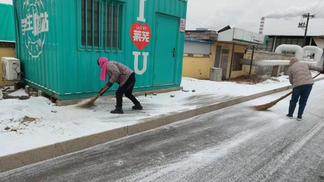 1月18日,冬日的雪如约而至,高庄街道辖区内学生驿站附近积雪覆路,结冰路面给学生上学出行带来安全隐患。为保障驿站及周边通行安全,高庄街道各村、社区闻雪而动,迅速集结党员干部、志愿者、热心村民组成清雪先锋队,开展学生驿站及周边道路清雪除冰志愿行动。