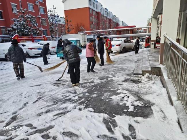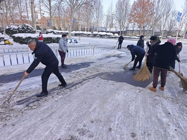 各村(社区)党组织带领党员志愿者及群众组成的清雪队伍,深入背街小巷、居民小区,集中对主干道、社区内部、医院周边等区域开展集中清理,形成“党员带头、群众参与”的清雪热潮。