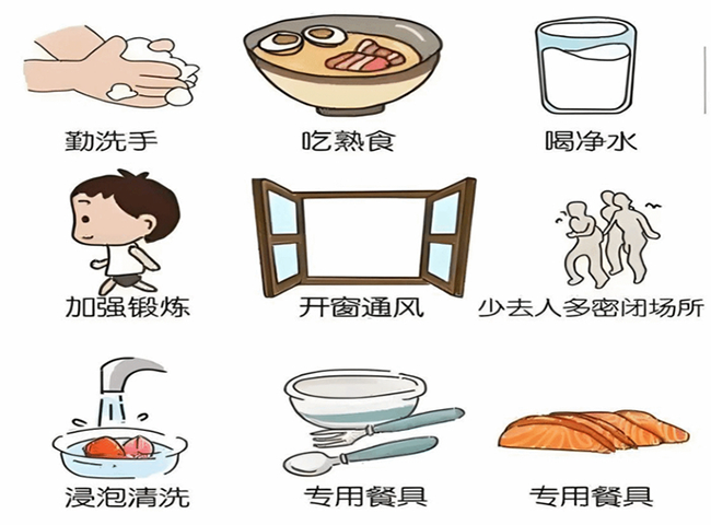 2.饮食卫生要把关:不吃生冷食物,瓜果蔬菜彻底洗净,肉类、蛋类等食物务必煮熟煮透。