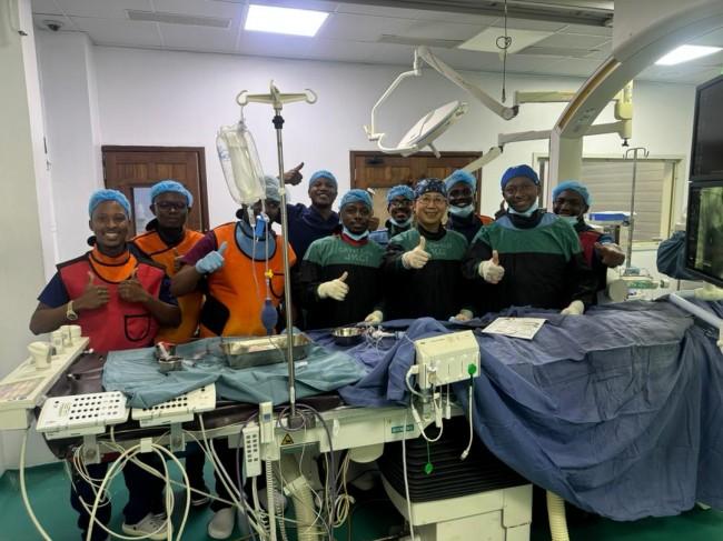 面对设备不足、耗材匮乏、技术体系尚未建立等多重困难,赵立健没有退缩。他敏锐地意识到,唯有帮助当地建立“可持续”的本土诊疗能力,才能从根本上改变现状。为此,他多方努力,从最基础的器械和耗材入手,积极推动国产封堵器在当地落地应用;自费购置部分关键介入耗材,缓解“巧妇难为无米之炊”的难题。在多方协调下,他成功举办坦桑尼亚首次先心病介入治疗培训与手术示范。
