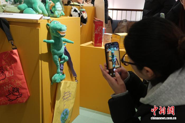 1月21日,游客拍摄“马踏飞燕”文创产品。 孙琳茹摄