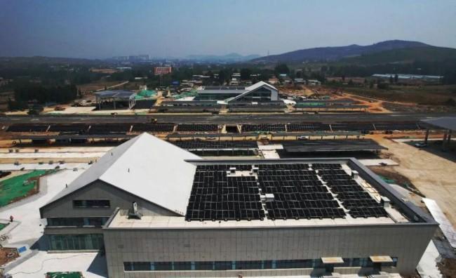 在全国首个全生命周期零碳服务区——探沂服务区,集团构建“光伏发电、储能调峰、智能管控”三位一体的清洁能源网,全方位利用综合楼、停车棚和边坡等空间资源,建设“分布式光伏+储能+微电网”能源系统,年均发电量达200万度,覆盖该服务区运营办公、车位充电等用电需求,同时在全省首次实现服务区建设期并网发电。