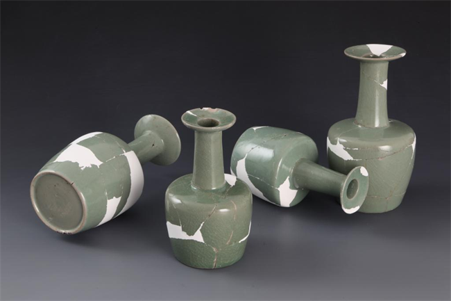 张公巷窑修复展出的盘口瓶。(张公巷窑遗址考古队提供)