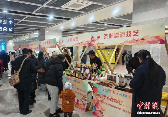 图为活动现场的非遗市集,天桥面塑、济南毛猴等项目集中展示,吸引过往市民旅客驻足体验。主办方供图