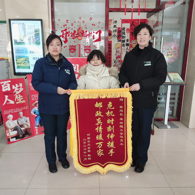 事后,伤者家属专程来到松林支局表达感谢并送来锦旗,对该局员工危难时刻挺身而出、热心救助的行为表示高度赞誉。