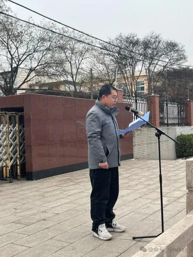 伴随着雄壮的国歌,五星红旗冉冉升起,全体师生肃立注目,少先队员行队礼,爱国情怀与奋进之志在晨光中激荡。升旗仪式上,学生代表王一驰同学发表国旗下演讲,从树立正确考试观念、做好考前充分准备、考中稳定发挥、考后积极调整四个方面,分享了实用的备考心得。他鼓励同学们以“咬定青山不放松”的信念,珍惜时光、扎实复习,用勤奋与坚持书写期末答卷。