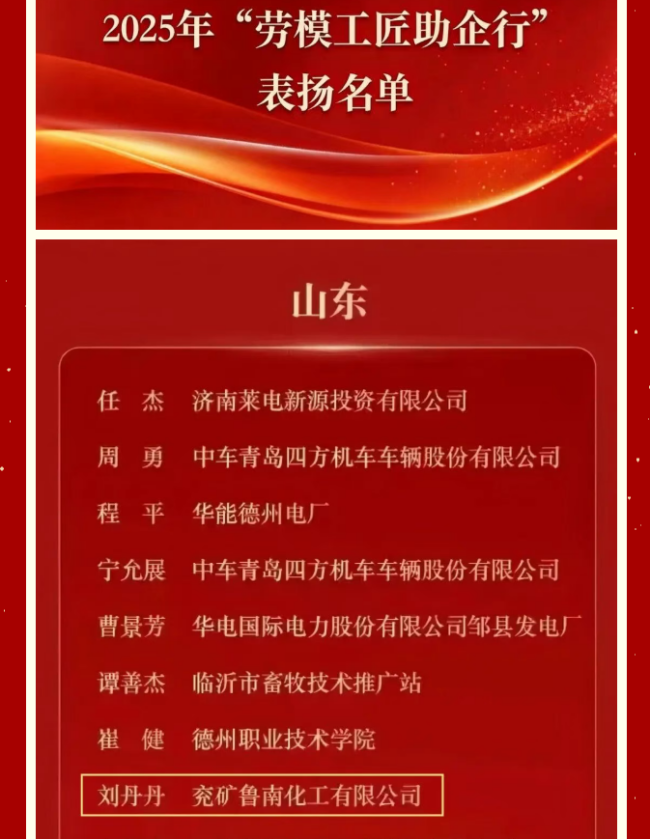 近日,中华全国总工会公布2025年“劳模工匠助企行”通报表扬名单,枣庄职业学院山东省技能大师工作室主持人刘丹丹光荣入选,全省仅10人获此殊荣。