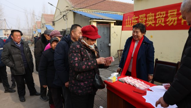 腊月十六,春节将至。山东舜奥贸易有限公司在济宁市微山县驩城镇常口家属院开展敬老慰问活动,为崔庄村113位年满70周岁的老年人每人发放500元过节费,送上新春的温暖与祝福。
