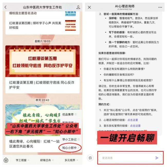 在这里,你不必担心无人回应,不必怀疑自己“小题大做”。每一次倾诉,都会被温柔以待;每一次求助,都能得到科学指引。在任何学生需要帮助的瞬间,“知心小郎中”都在!(刁书剑、谭梦)