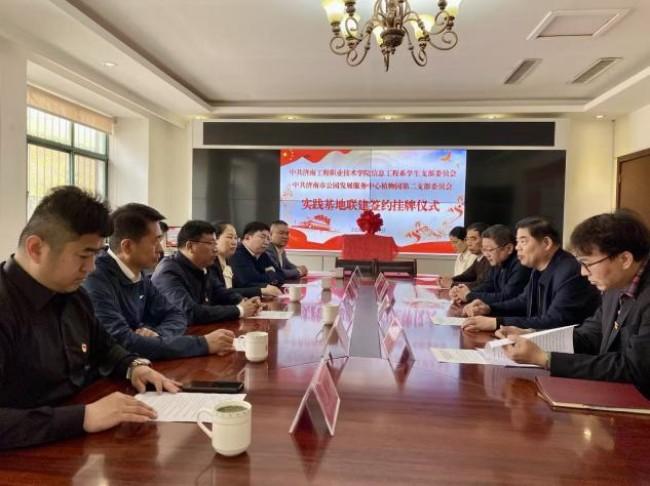 为深入践行绿色发展理念,提升党支部建设,深化校地合作协同育人机制,3月27日下午,济南工程职业技术学院信息工程系学生党支部与济南市公园发展服务中心植物园第二党支部,开展实践基地联建签约暨挂牌仪式。学院党委委员、纪委书记郭洪钢出席签约活动,签约仪式由植物园工作部部长、党总支书记赵西连主持。