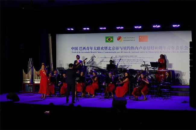 4月14日,中国—巴西青年大联欢暨北京市与里约热内卢市结好40周年青年音乐会在中国人民大学举行。中国人民大学学生艺术团、巴西里约热内卢科帕卡巴纳要塞乐团及灵心乐府机器人乐队联袂演出,管弦合奏、民族歌舞、京剧选段与科技艺术跨界融合,奏响跨越山海的友谊乐章,现场掌声不断。