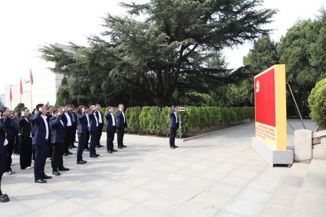 “我志愿加入中国共产党……”默哀结束后,全体党员面向鲜红的党旗,举起右拳,重温入党誓词。铿锵有力的誓言在纪念馆广场上空回荡,一字一句,掷地有声。在场人员全部肃立聆听,眼神坚定。对他们而言,这不仅是一次仪式,更是一次精神的叩问。