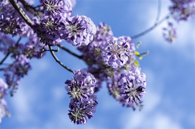 紫瀑垂落枝桠,把蓝天晕成温柔的底色。单英/摄