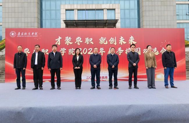 4月22日上午,枣庄职业学院在工匠文化广场举办以“才聚枣职就创未来”为主题的2026年春季校园双选会。学院领导郝荣平、梁家和、张蓝兮、闫博、郝艺、曹先贺出席开幕式,开幕式由党委委员、副院长刘希震主持。市人力资源社会保障局、市妇联、市职教社、市高新区社会事务综合服务中心、山东欣旺达新能源有限公司有关负责同志参加开幕式。本次双选会吸引省内外230余家企业参会,枣庄企业专场同步设立,与学院学子齐聚一堂,共赴这场就业盛会。