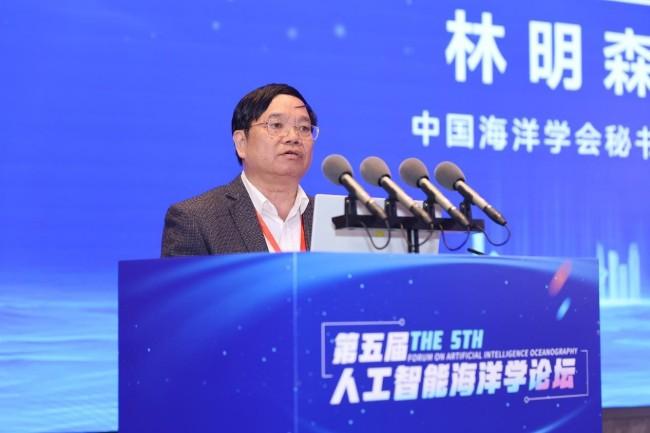 林明森在致辞中表示,人工智能作为引领新一轮科技革命和产业变革的重要力量,凭借其在海量数据挖掘、复杂模式识别、高效预测推演等方面的独特优势,正在与海洋科学深度融合,催生人工智能海洋学这一新兴交叉学科,为破解海洋观测难题、深化海洋过程认知、提升海洋服务能力提供了新的路径。中国海洋学会将继续发挥桥梁纽带作用,搭建高水平学术交流平台,推动学科交叉融合与协同创新。他倡议,要坚持科技自立自强,聚焦海洋智能预报、遥感反演、生态监测等关键领域,打造具有自主知识产权的核心算法与模型体系;要强化产学研用协同,推动科研成果从实验室走向应用场,让AI技术在渔业生产、灾害防控、海洋治理等场景中落地见效;要深化开放合作共享,加强国内外学术交流,开放共享数据资源与技术成果,共同应对全球海洋治理挑战。