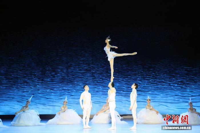当地时间4月24日,广州市杂技艺术剧院创作演出的杂技剧《天鹅》在俄罗斯莫斯科大剧院演出。中新社记者田冰摄