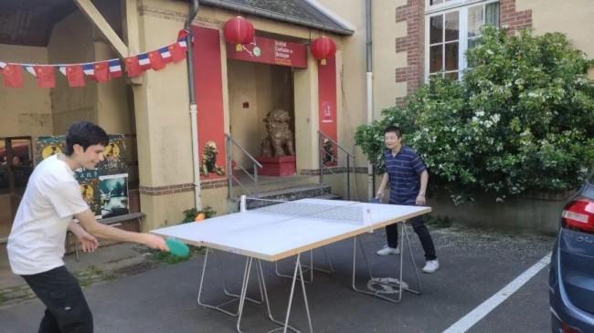 活动伊始,中法友人在球桌前挥拍竞技,乒乓球的清脆声响与欢笑声交织回荡;彩色的毽子在脚尖轻盈翻飞,围观的外国友人跟着节奏鼓掌喝彩,眼中满是好奇与欣喜。孔子学院的老师一边示范,一边讲述毽子承载的中国市井烟火记忆,让外国友人在运动互动中,触摸到东方生活的鲜活温度。